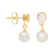Brinco Rommanel Banhado Ouro Pequeno Com Cristal E Pérola 523951