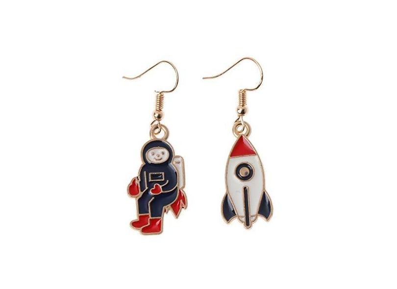 Brincos R-RIGHT Fashion Trend de desenho animado Planeta esmaltado astronauta Lua brincos fofos assimétricos pendentes