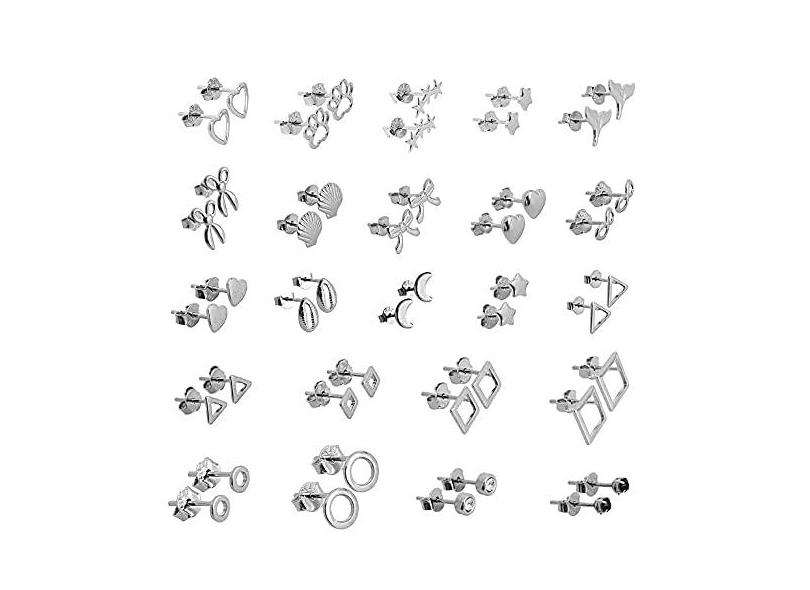 Kit 10 Pares Brincos Pequenos Folheados Em Ródio Com Modelos Sortidos