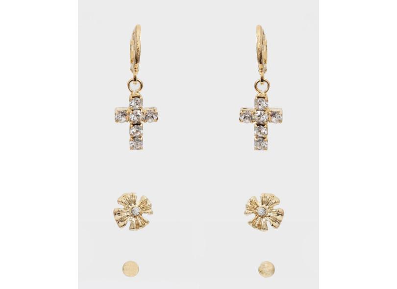 Kit 3 Pares Brincos Feminino Strass Marisa