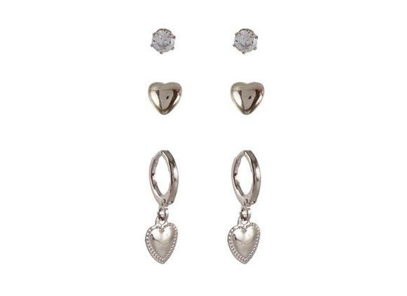 Kit 3 pares de brincos prateado com pedra cristal zoey