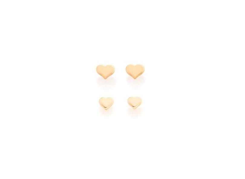 Kit rommanel brincos folheados a ouro coração
