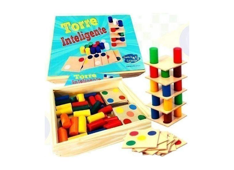 Brinquedo Jogo Torre Inteligente Colorido Madeira Educativo