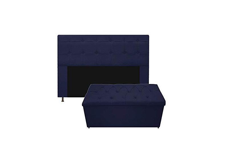 Kit Cabeceira e Calçadeira Baú Estofada Mel 140 cm Casal Com Capitonê Corano Marinho - Doce Sonho Móveis