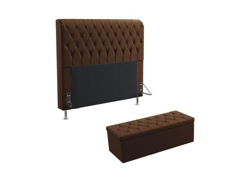 Kit Cabeceira Estofada Bellatrix 140 Para Cama de Casal e Calçadeira Sagitarius Couro Artificial Marrom Aradecor