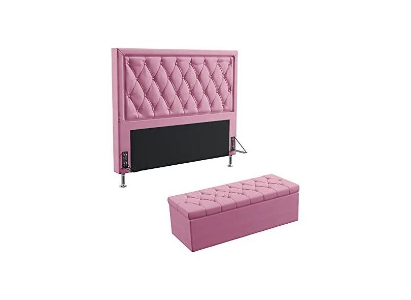 Kit Cabeceira Estofada Centaurus 140 Para Cama de Casal e Calçadeira Sagitarius Sued Rosê Aradecor