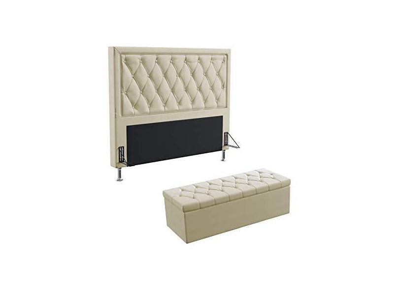 Kit Cabeceira Estofada Centaurus 160 Para Cama Queen e Calçadeira Sagitarius Sued Bege Aradecor