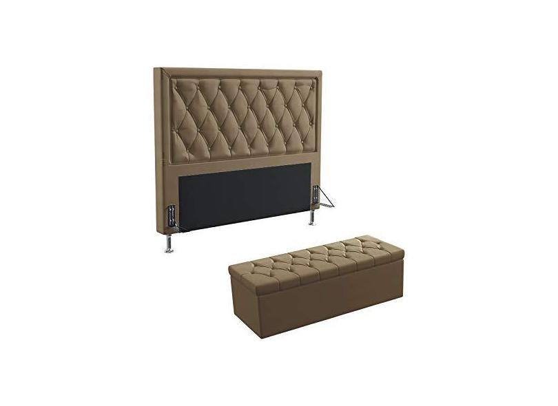 Kit Cabeceira Estofada Centaurus 160 Para Cama Queen e Calçadeira Sagitarius Sued Capuccino Aradecor