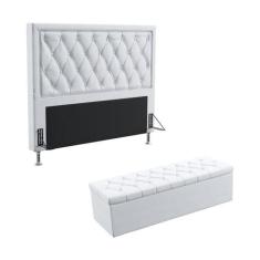 Kit Cabeceira Estofada Centaurus 195 Para Cama King e Calçadeira Sagitarius Couro Artificial Aradecor