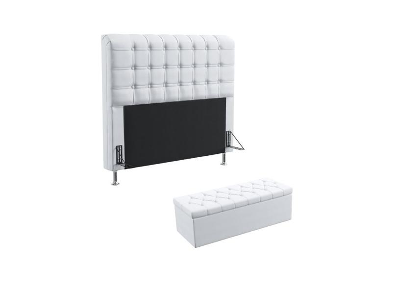 Kit Cabeceira Estofada Para Cama Box Dama 160 Para Cama Queen e Calçadeira Sagitarius Couro Artificial Aradecor