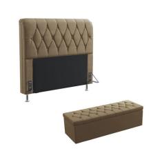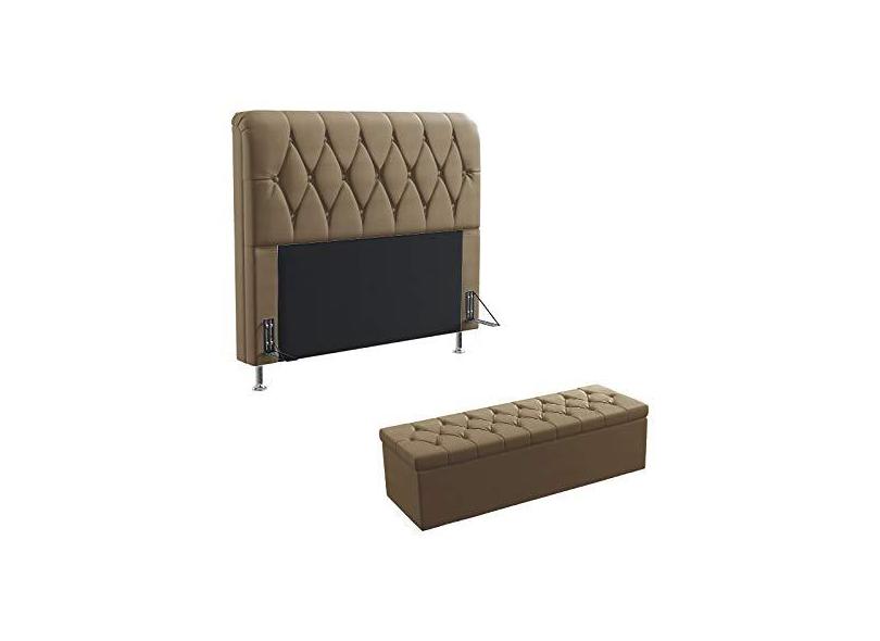 Kit Cabeceira Estofada Para Cama Box Sirius 195 Para Cama King e Calçadeira Sagitarius Sued Capuccino Aradecor