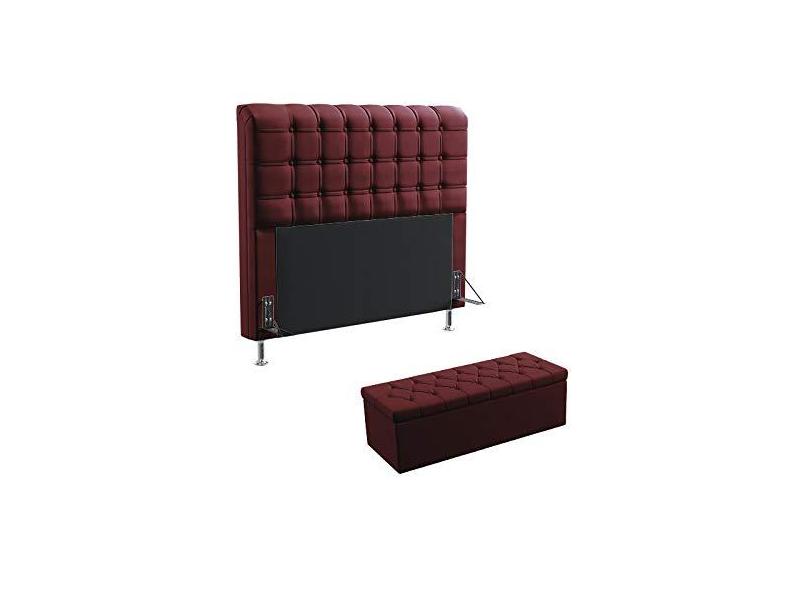 Kit Cabeceira Estofada Rana 140 Para Cama de Casal e Calçadeira Sagitarius Sued Bordô Aradecor