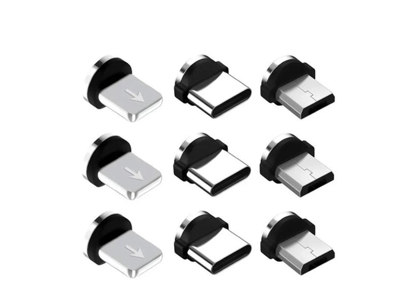 5 pçs plugue magnético 2 pinos adaptador de cabo de carregamento magnético micro usb tipo c ímã