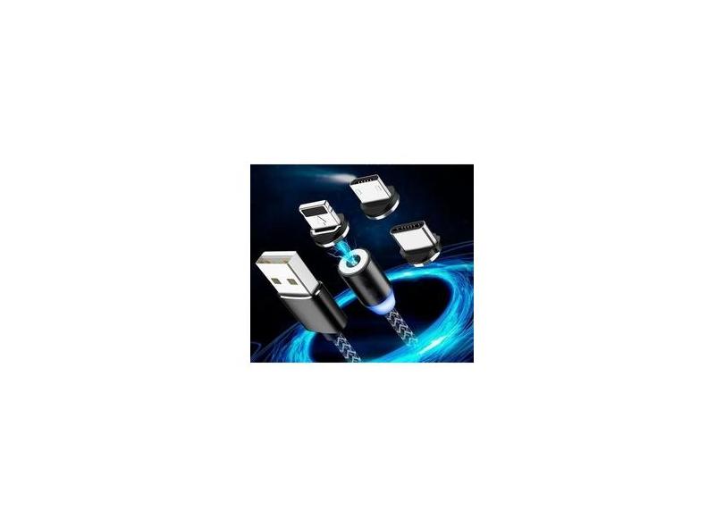 Cabo Carregador Magnético Imã Premium 3em1led Ios Android V8
