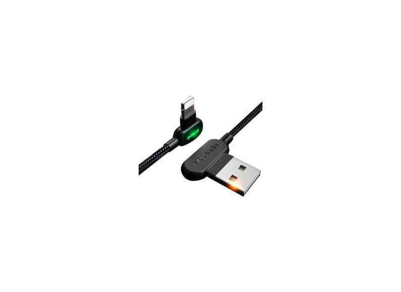 Cabo Carregador Usb Led Lightning Apple 90º 2.4a 50cm Preto