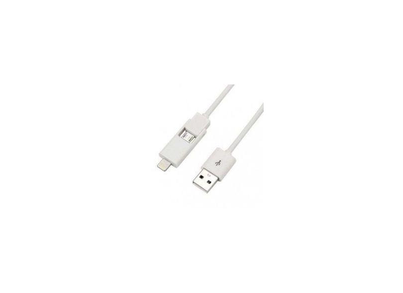 Cabo de Dados USB 2X1 V8 + iPhone 5 5S 6 1 Metro Branco Compativel