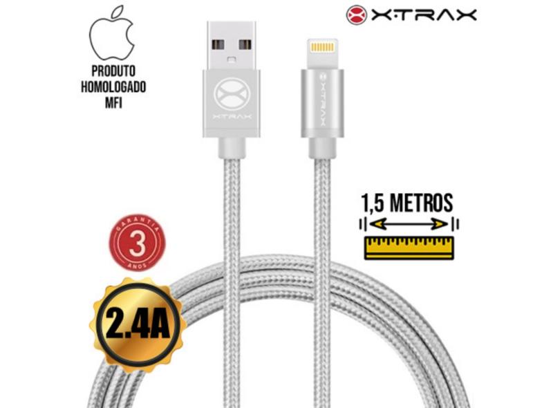Cabo Mfi Apple Xtrax 1,5m Com Ponta De Aluminio Prata