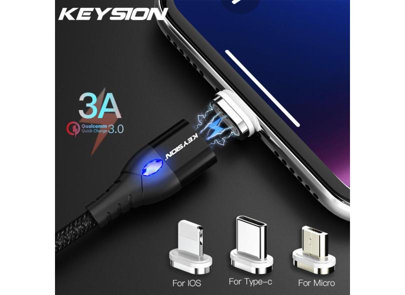 Keysion 3a cabo usb magnético para iphone, micro usb tipo-c, carregamento rápido, micro usb samsung