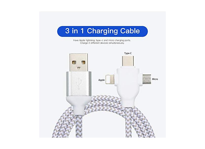 US 3 em 1 Cabo de carregamento Cabo de dados 2A com Micro USB/Type-c/Relâmpago de substituição para iPhone Huawei Nylon trançado múltiplo USB carregador rápido