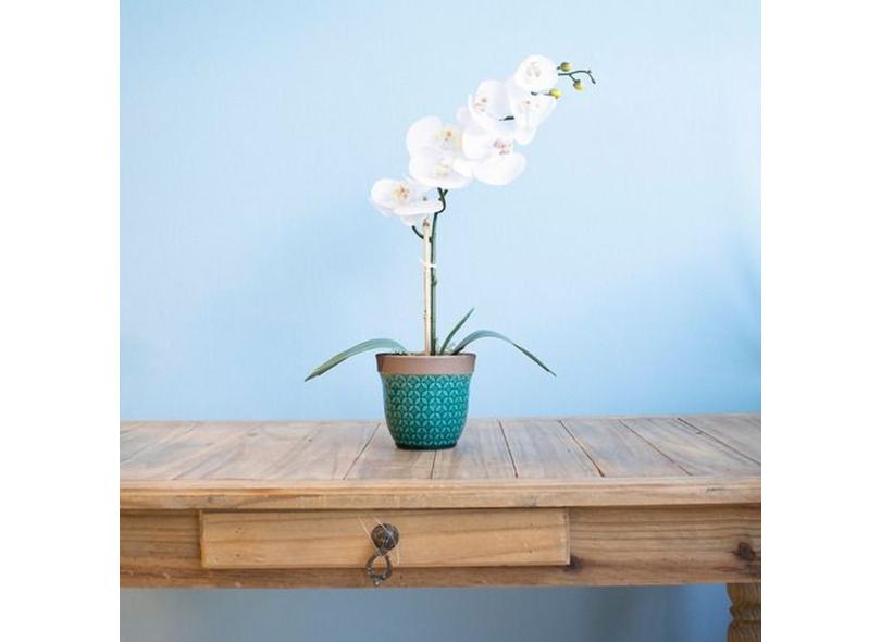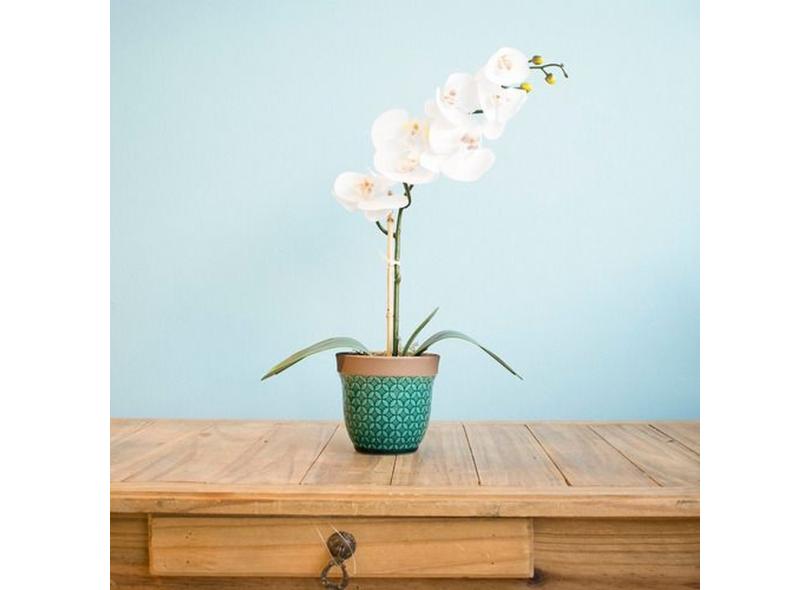 Arranjo Orquídea De Silicone No Vaso Turquesa