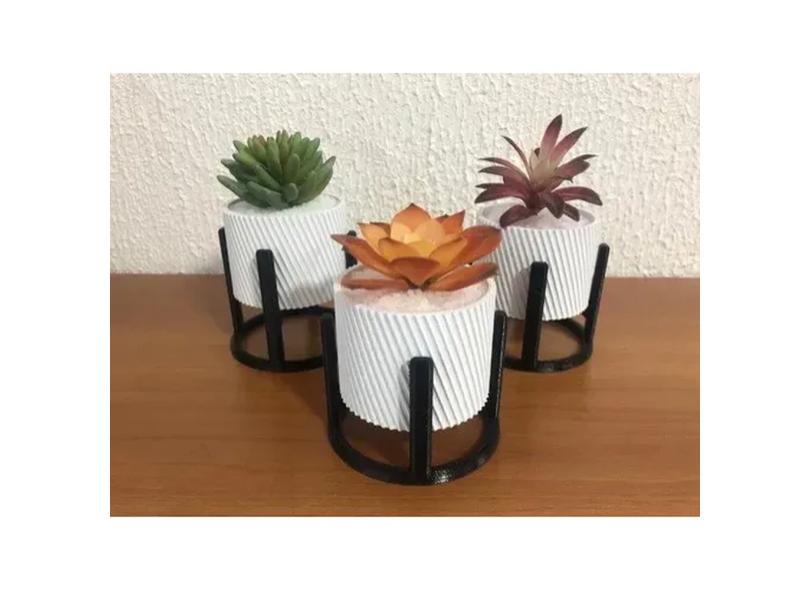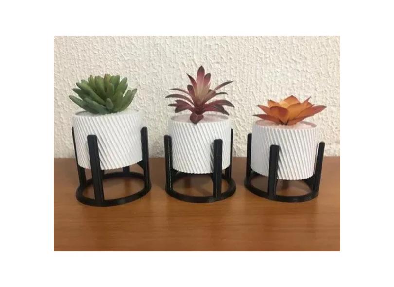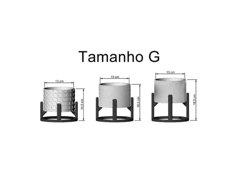 Kit 3 Vasos Cachepot Com Suporte P/ Suculentas e Plantas - Grande -Diagonal