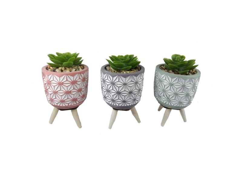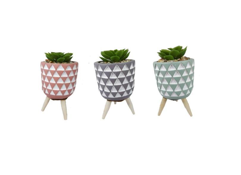Kit 6 Suculentas Artificiais Vasinho Pé Vaso Cimento Colorido