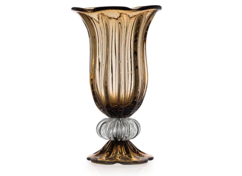Vaso Em Cristal Murano Marron Assinado São Marcos