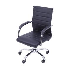 Cadeira Boxbit Florença Baixa Rodízio Preta em P.U. Base Cromada Base Rodízio