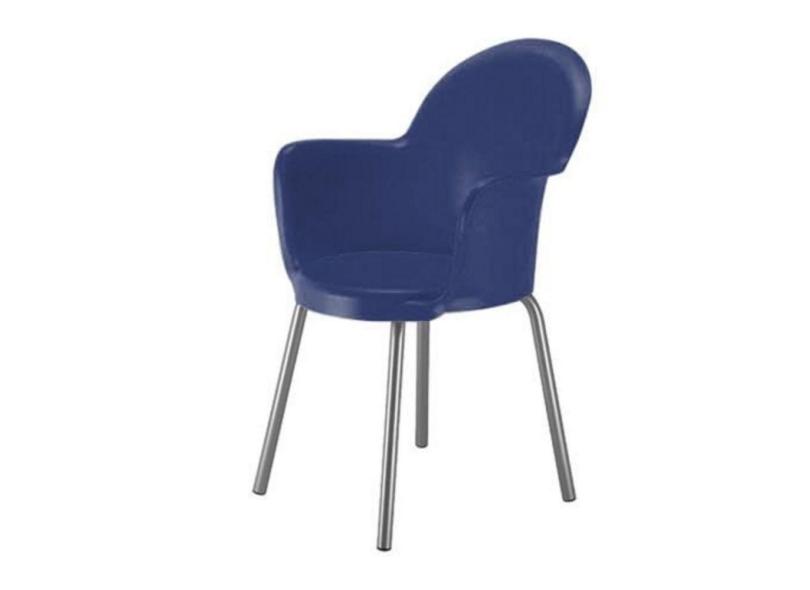 Cadeira com Braço Base Cromada Polipropileno Moon Azul