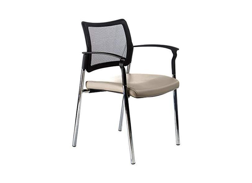 Cadeira fixa base cromada e tela mesh Linha Prisma Bege