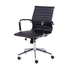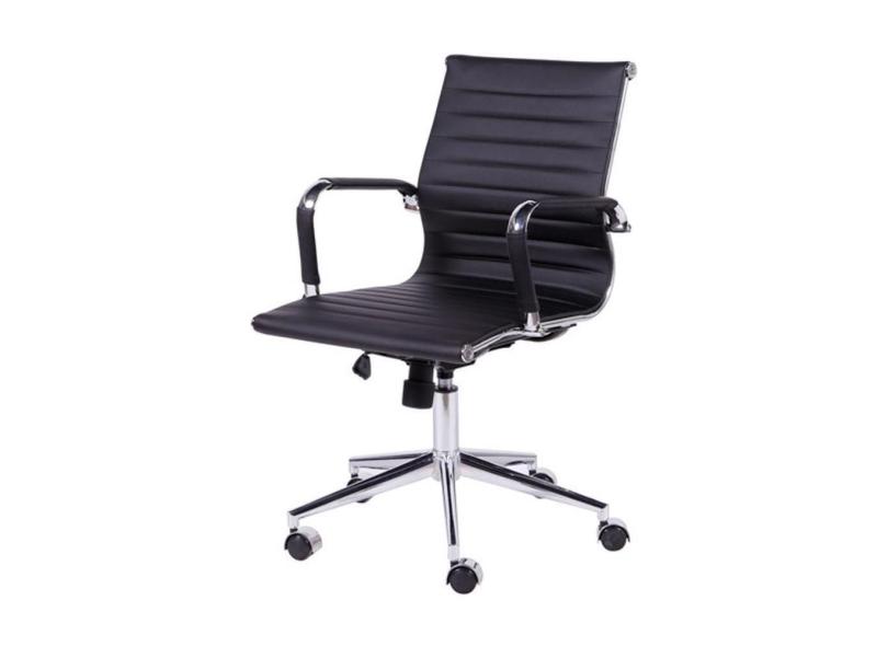 Cadeira Giratória Baixa Office Esteirinha Em Pu Preto Base Rodízio Cromado