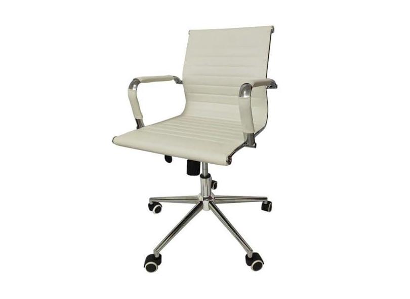 Cadeira Giratória Baixa Office Esteirinha Rivatti em Pu Branco Base Rodízio Cromado