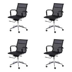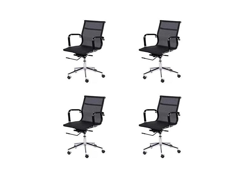 Conjunto 4 Cadeiras de Escritório com Rodízios Tela Baixa Or Design Preto