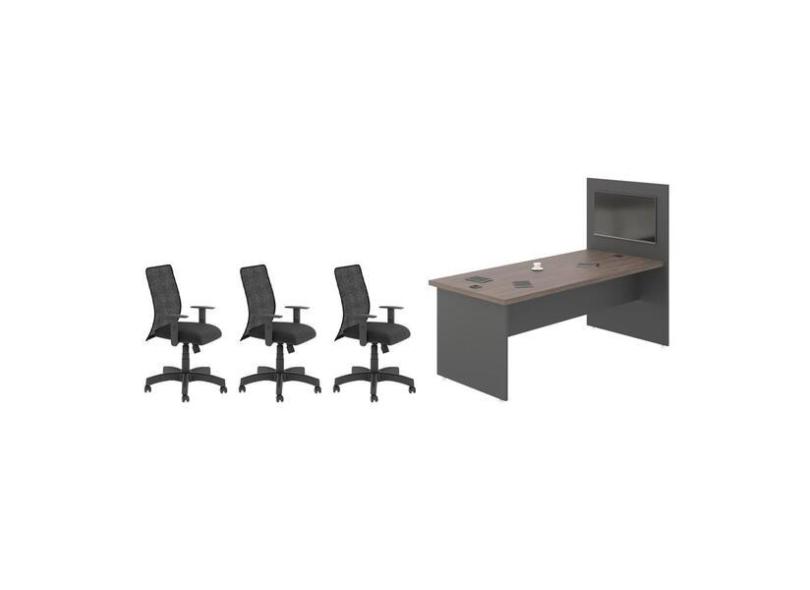 Jogo Mesa E Painel De Escrit rio Com 3 Cadeiras Freij Preto