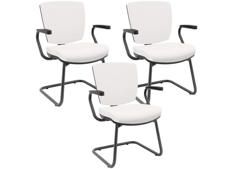 Kit 03 Cadeiras de Escritório Fixa Executiva Office Preto Slim Baixa Flexi P03 Vinil Branco - Lyam