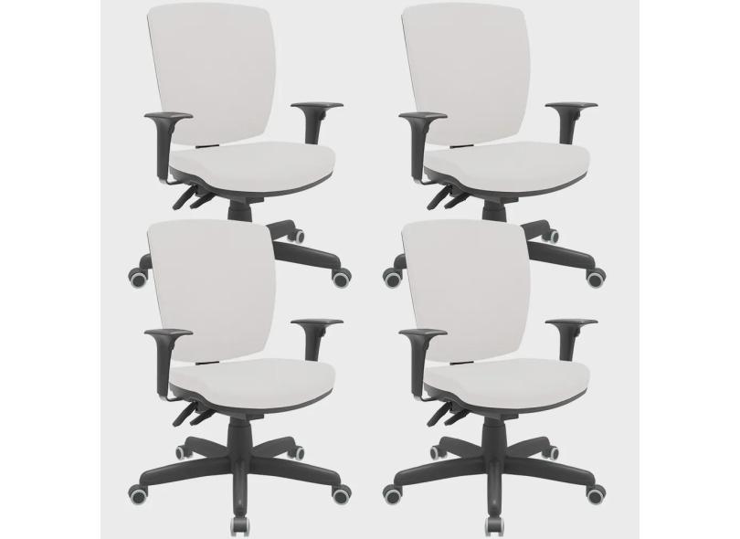 Kit 04 Cadeiras de Escritório Diretor Office Giratória Preto Alta Flexi P03 Vinil Branco - Lyam