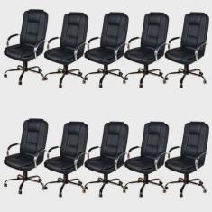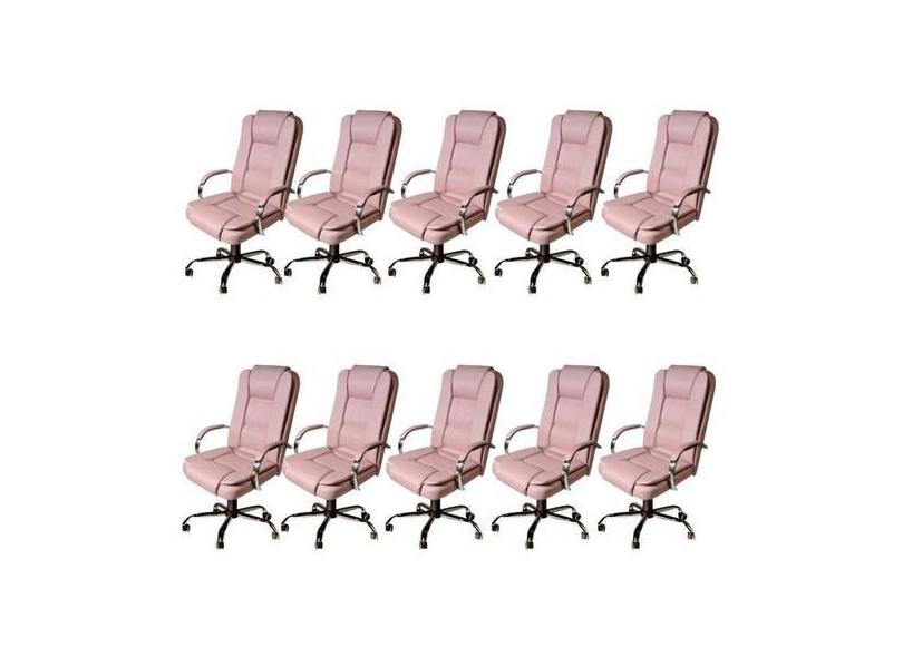 Kit 10 Cadeiras De Escritório Presidente Em Material Sintético Base Cr