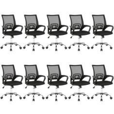 Kit 10 Cadeiras para Escritório com Rodízios Manchester Preto