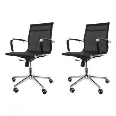 Kit 2 Cadeiras De Escritório Baixa Tela Mesh p/120Kg Preto