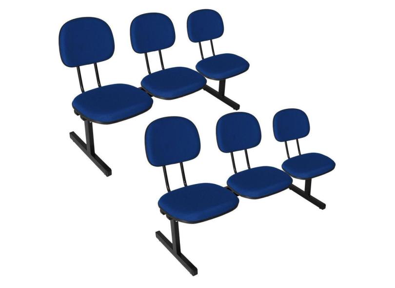 Kit 2 Cadeiras Escritório Longarinas de 3 Lugares Ecoflex Azul