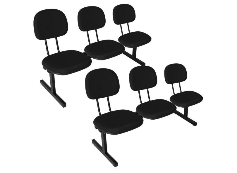 Kit 2 Cadeiras Escritório Longarinas de 3 Lugares Ecoflex Preto