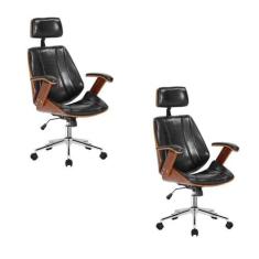 Kit 2 Cadeiras Escritório Presidente Giratória Kopenhagen Apoio Cabeça