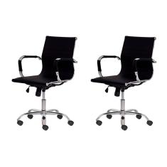 Kit 2 Cadeiras Escritório Stripes Diretor Pu Preta Base Gira - Waw Des