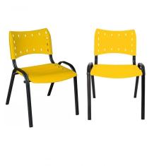 Kit 2 Cadeiras Iso para Escola Escritório Comércio Amarela Base Preta