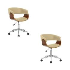 Kit 2 Cadeiras para Escritório Diretor Giratória Regulável Turim Nude