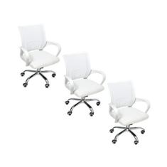 Kit 3 Cadeiras de Escritório Begonia Mesh Ergonômico Branco