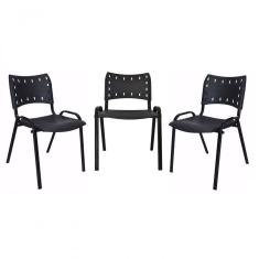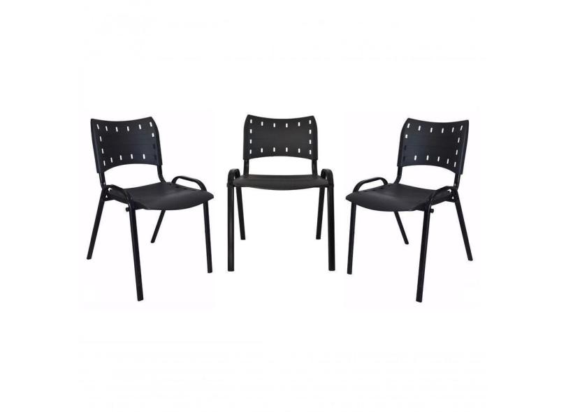 Kit 3 Cadeiras Iso Para Escola Escritório Comércio Preto Base Preto