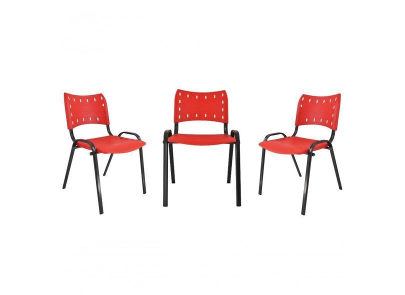 Kit 3 Cadeiras Iso para Escola Escritório Comércio Vermelha Base Preta