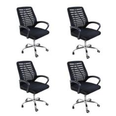 Kit 4 Cadeiras De Escritório Esteirinha Mesh Ergonômica Preto