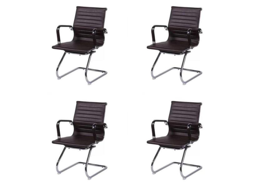 Kit 4 Cadeiras para Escritório Baixa Esteirinha Fixa Sintético 3301 Café